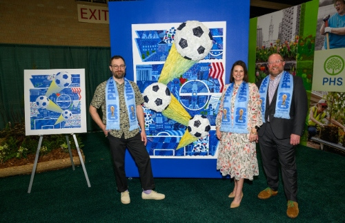 Philadelphia’s was the first Host City poster design to be unveiled in March 2025 through a stunning floral interpretation at the Pennsylvania Horticultural Society’s PHS Philadelphia Flower Show. Created by Valley Forge Flowers, the floral display was preserved and there will be more opportunities for the public to see the poster design throughout the months in the lead up to the World Cup in 2026.
